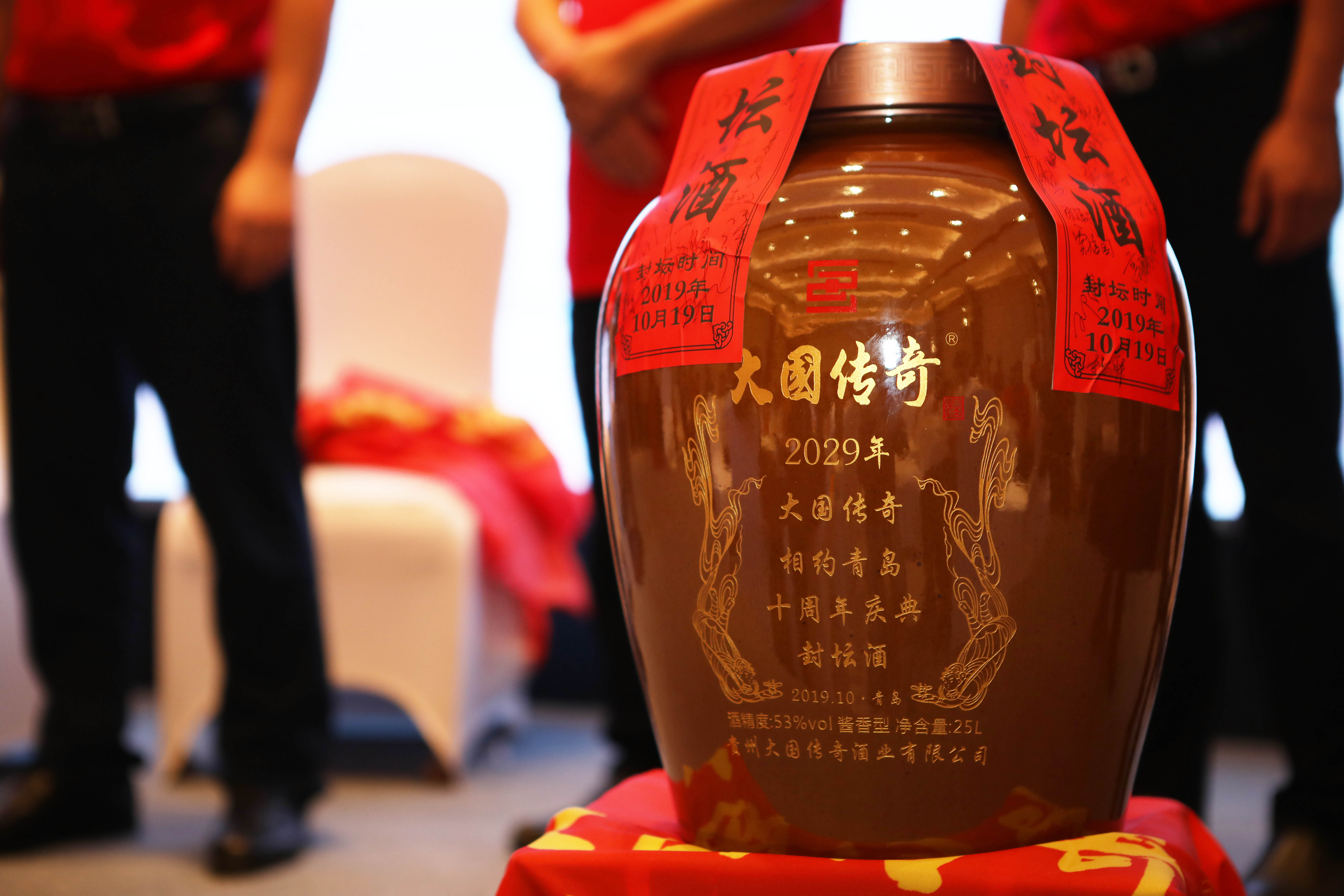 現(xiàn)場董事長令狐自喬先生同湖南分公司總經(jīng)理王繼偉先生、青島分公司總經(jīng)理張鵬飛、張曉明先生和大國傳奇品牌見證人徐相智先生共同封壇— —2029年大國傳奇相約青島十周年慶典封壇酒,十年以后相約青島一起開壇見證大國傳奇的輝煌!