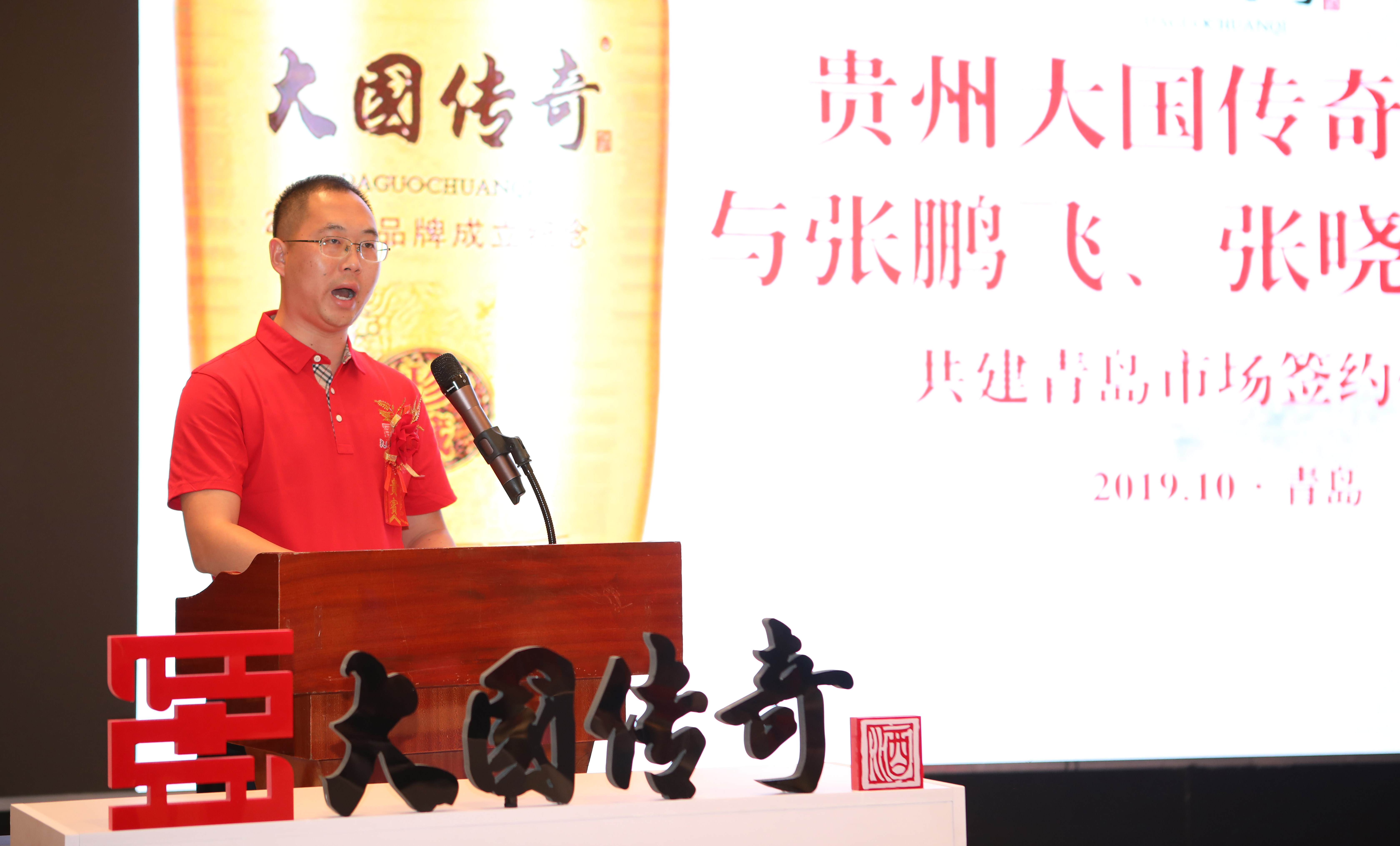 慶典上貴州大國傳奇酒業(yè)與張鵬飛、張曉明先生,進(jìn)行了品牌戰(zhàn)略合作、共建青島市場的簽約儀式。