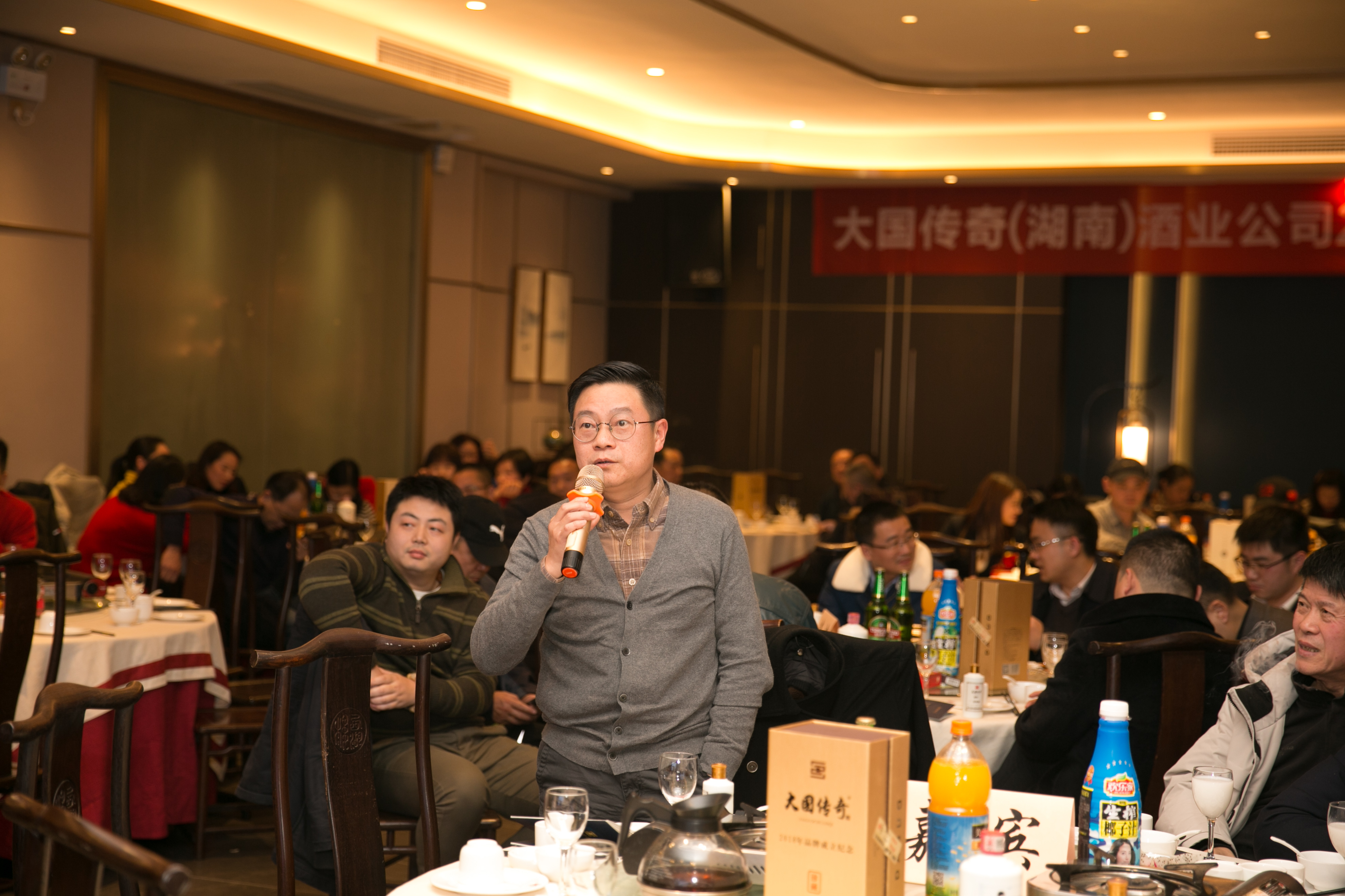 大國傳奇(湖南)酒業(yè)有限公司在王總的大力宣傳、推廣下,獲得了可喜的成績(jī),這離不開大家的支持和幫助,所以在這新春佳節(jié)到來之際,我們翻越高山,跨過大河,來到湖南長(zhǎng)沙答謝在座的各位朋友。現(xiàn)在我僅代表貴州大國傳奇酒業(yè)全體員工向前來參加年會(huì)的各位領(lǐng)導(dǎo)和嘉賓們表示衷心的感謝和熱烈的歡迎!